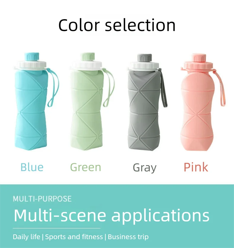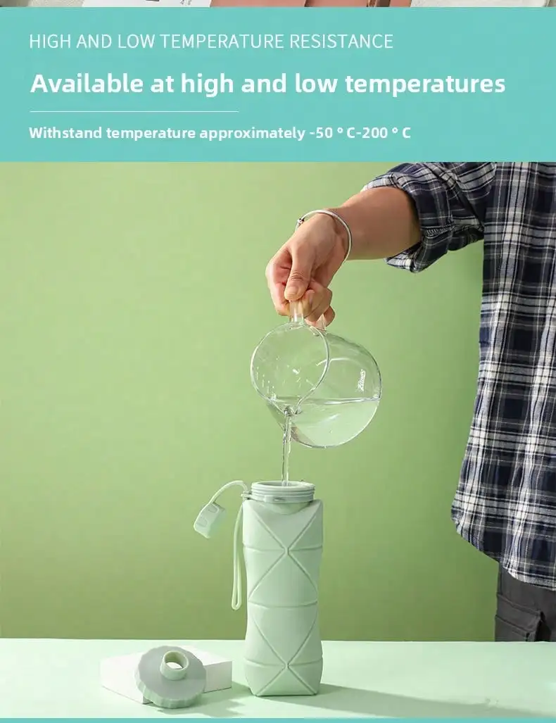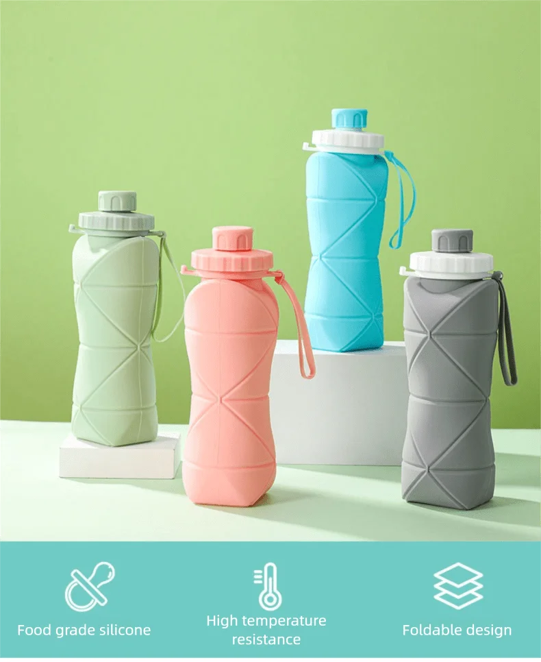 1Pc 600mlLarge Collapsible Silicone Cup-Portable Travel Water Bottle for Outdoor, Food-Grade with Fresh Colors, Foldable Design