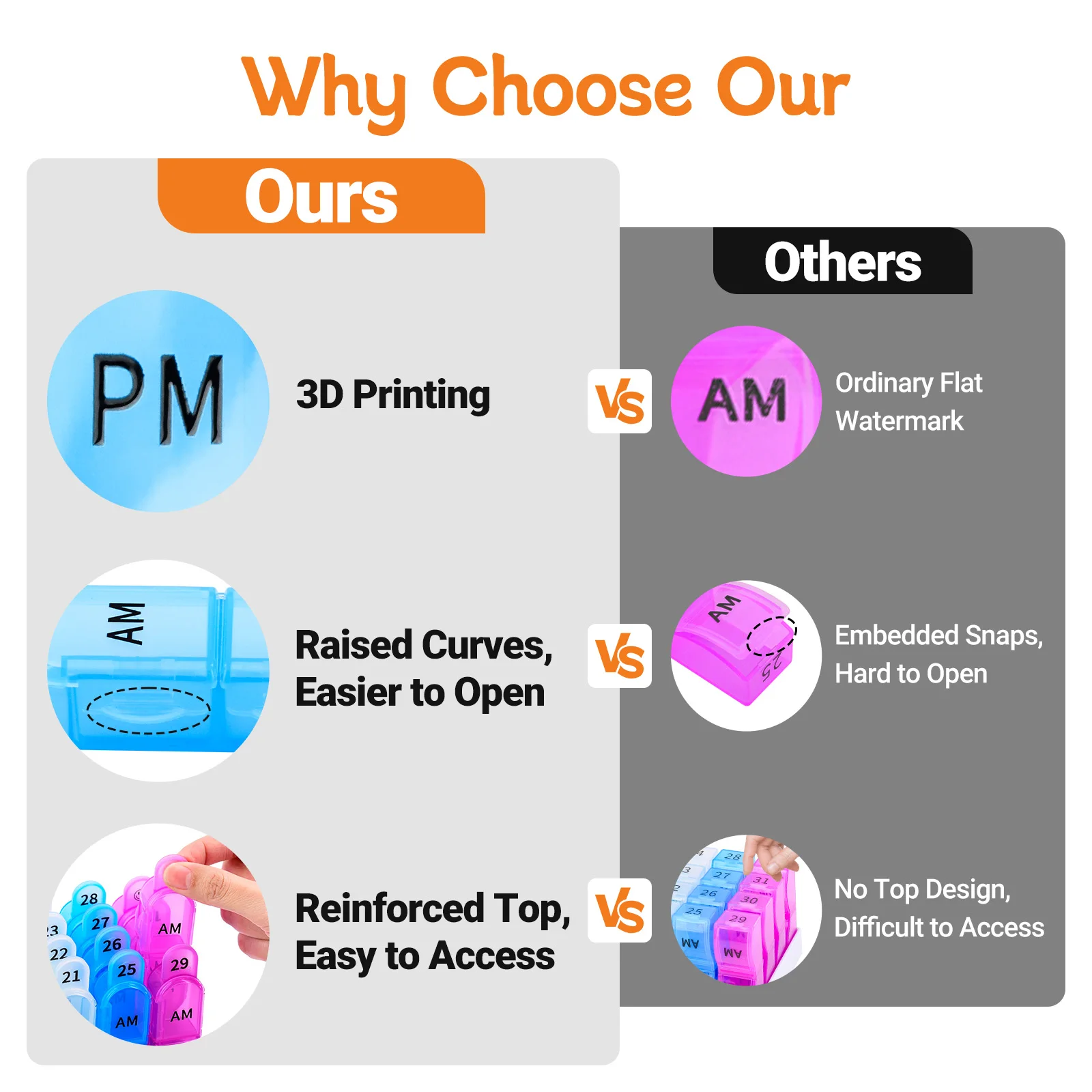 1PCS Weekly/ Monthly Pill Case Pillbox Portable Travel Pill Organizer for Medications and Supplements Food-Grade PP Materials