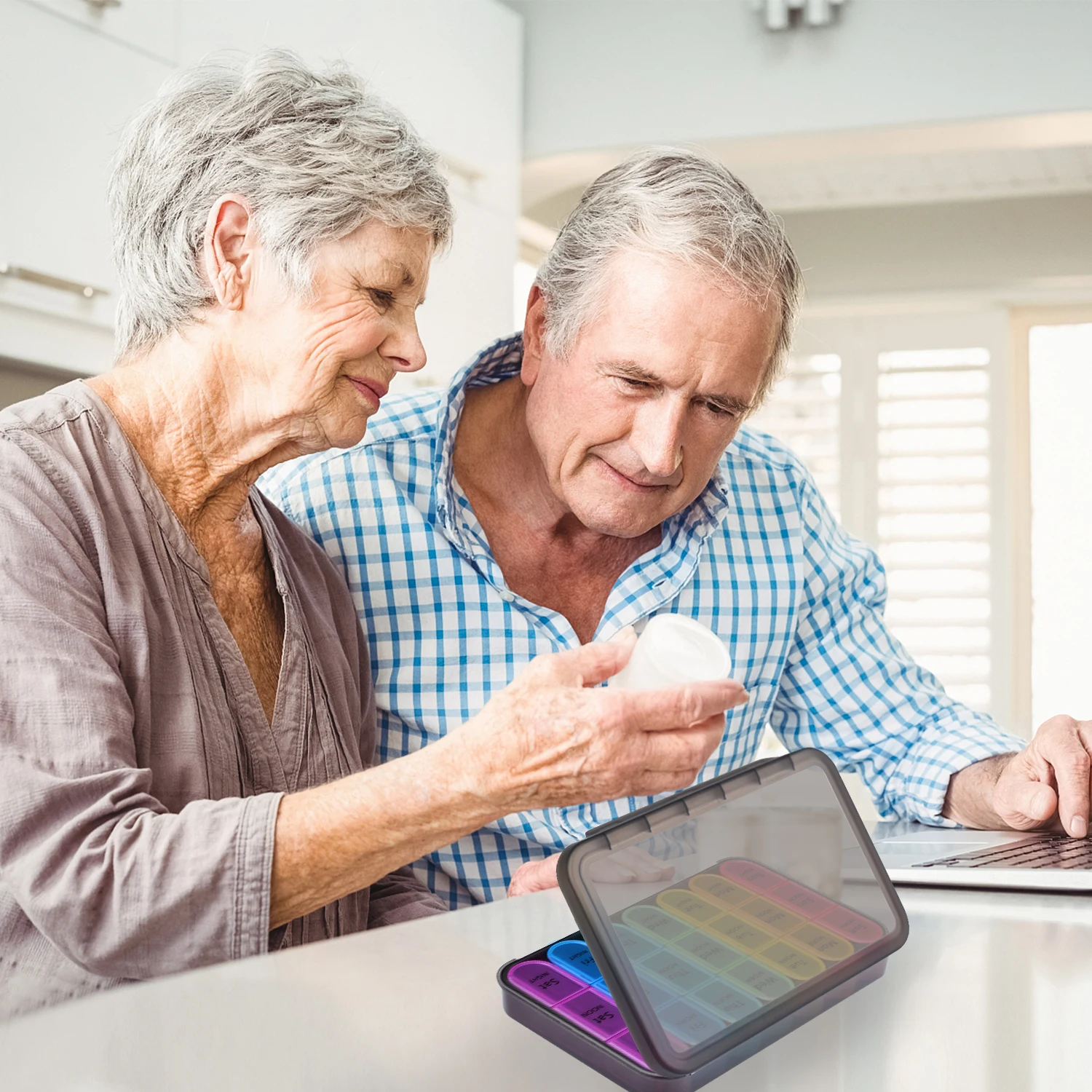 【Secure Sealing】Both the daily pill organiser and outer case feature snap closures that seal tightly and securely, protecting against dust and moisture while preventing accidental opening if dropped.