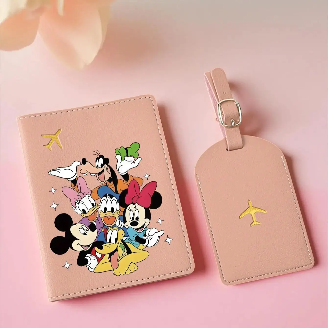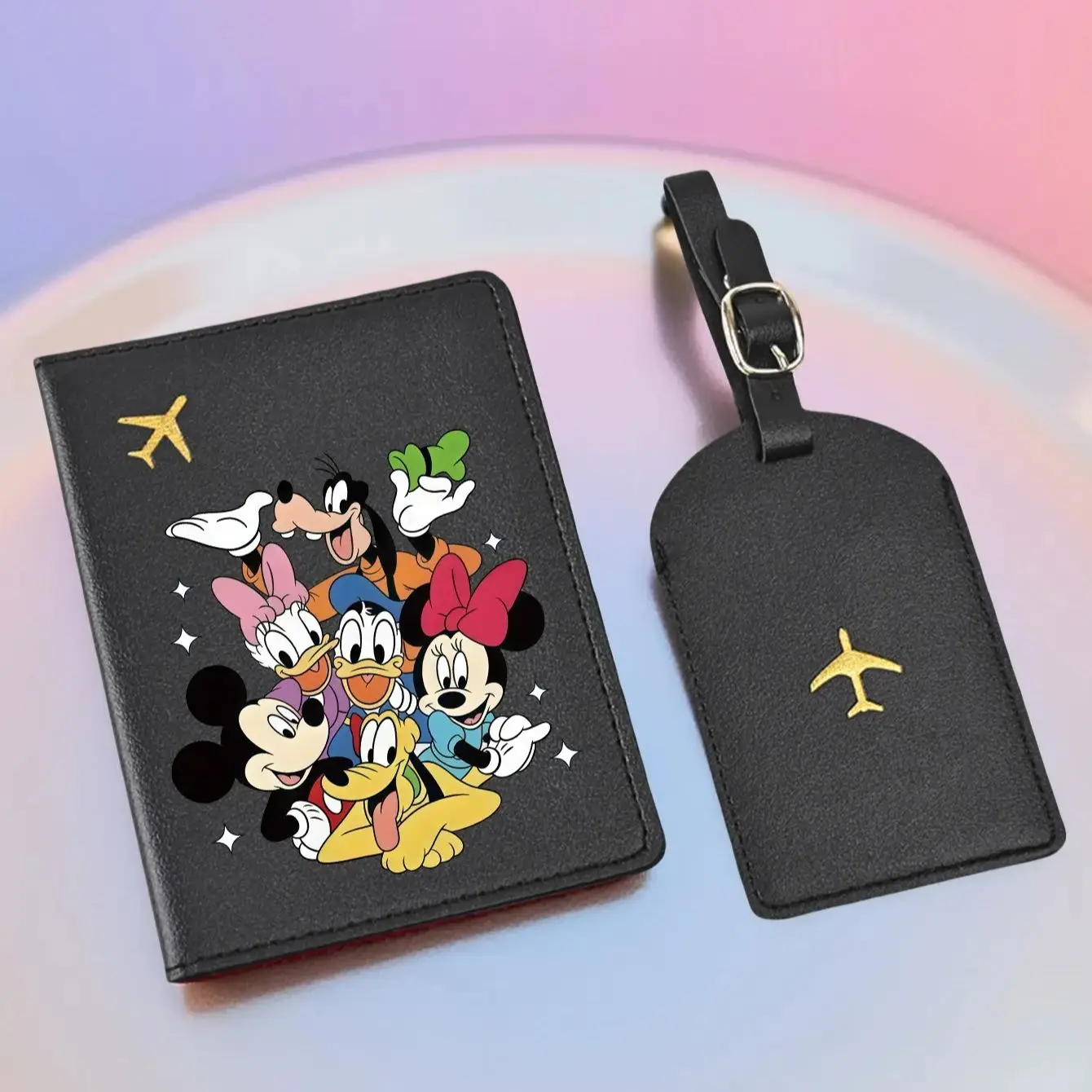 2PC Mickey Minnie Donald Passport Holder & Luggage Tag Set, PU Travel Wallet, Cute Travel Essentials Gift for All Ages