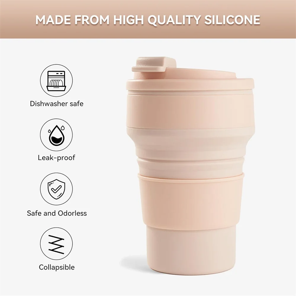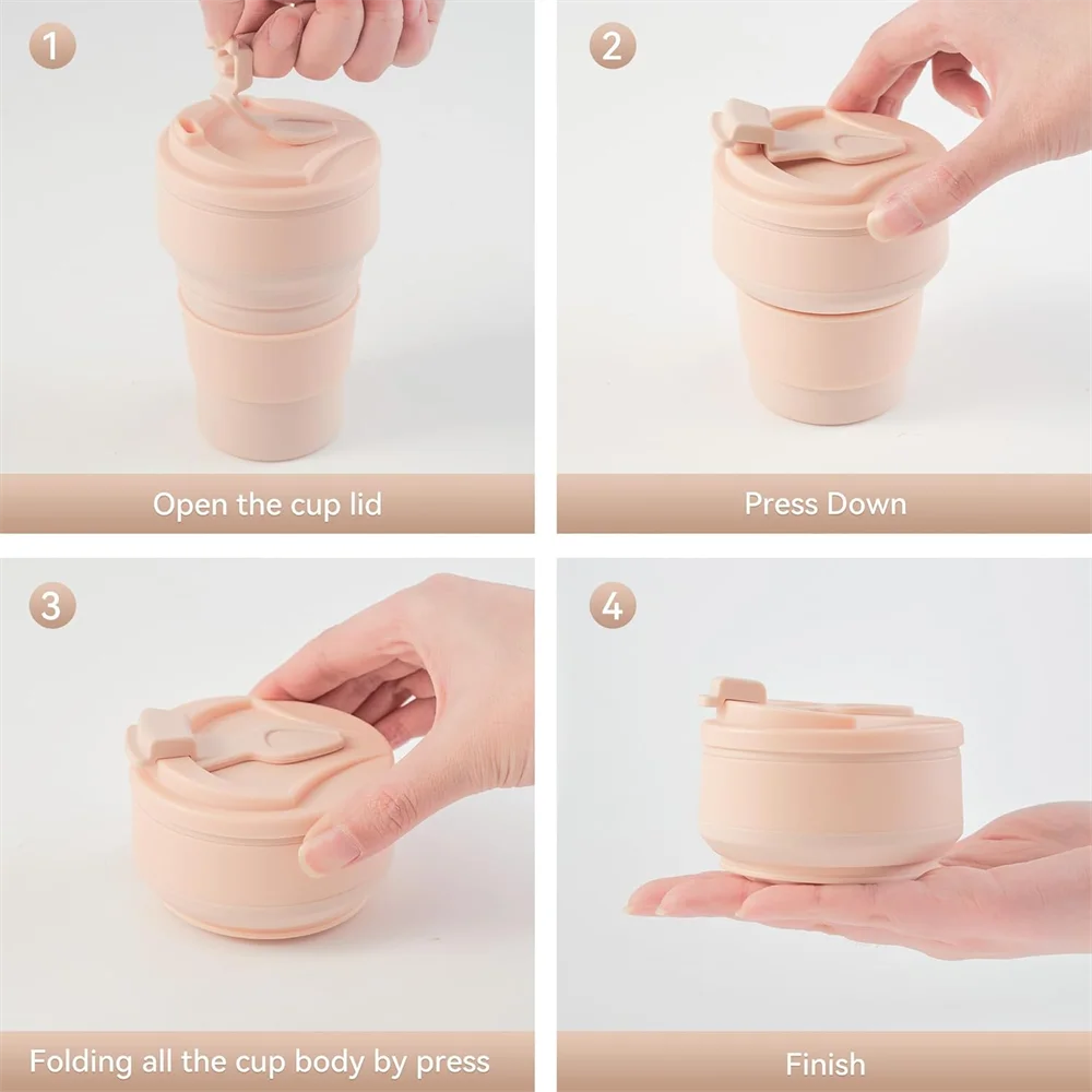 High-Quality Silicone Folding Cup: Crafted from food-grade silicone, free from harmful substances like BPA, BPS, phthalates, lead, and adhesives. Its safe, odorless design preserves the pure flavor of your beverages for worry-free enjoyment.