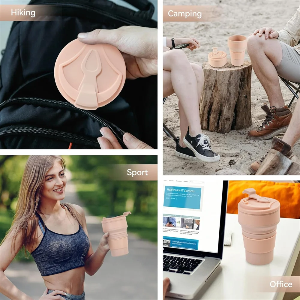 Collapsible Silicone Travel Cup with Lid - Portable and Reusable Drinking Cup for Camping, Hiking, and Outdoor Activities