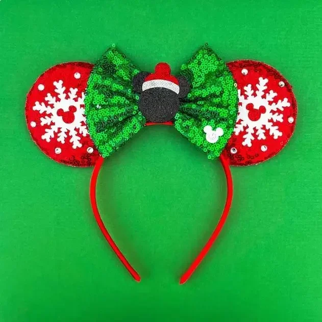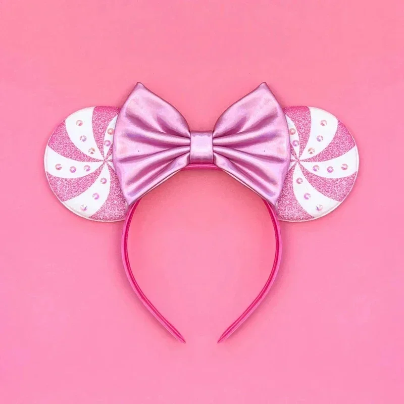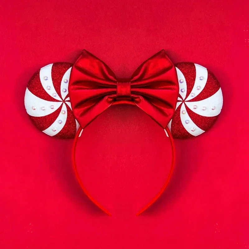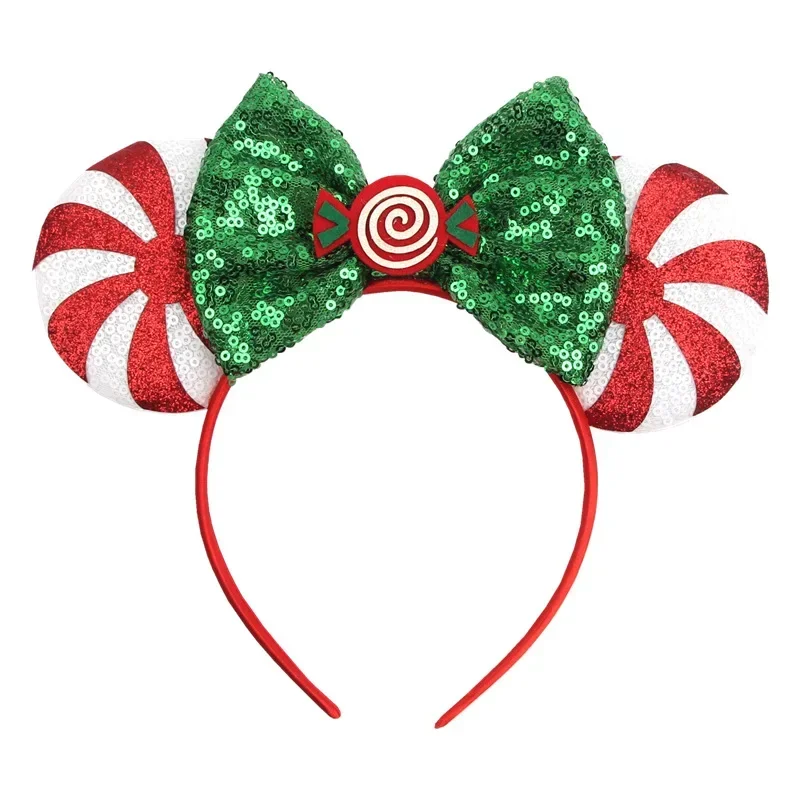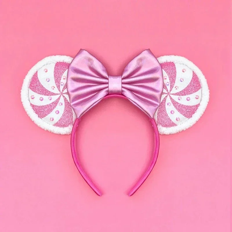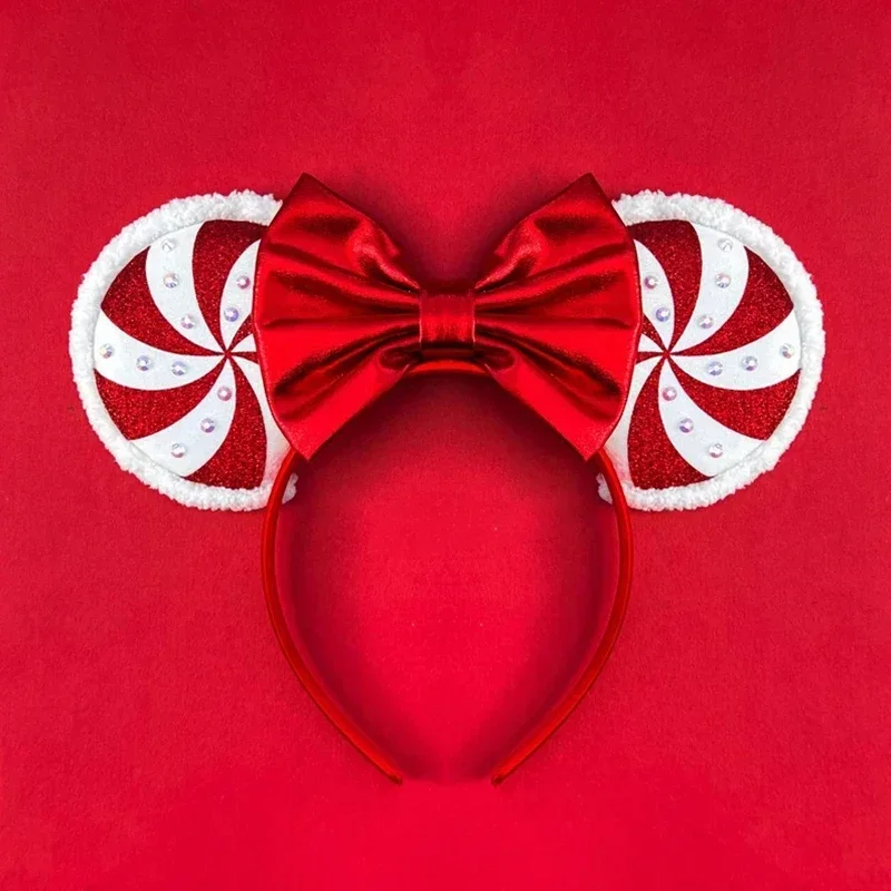 Disney Mickey Mouse Ear Hairbands Lollipop Candy Cane Bows Christmas Headband for Adults Party Kids Women Plush Hair Accessories