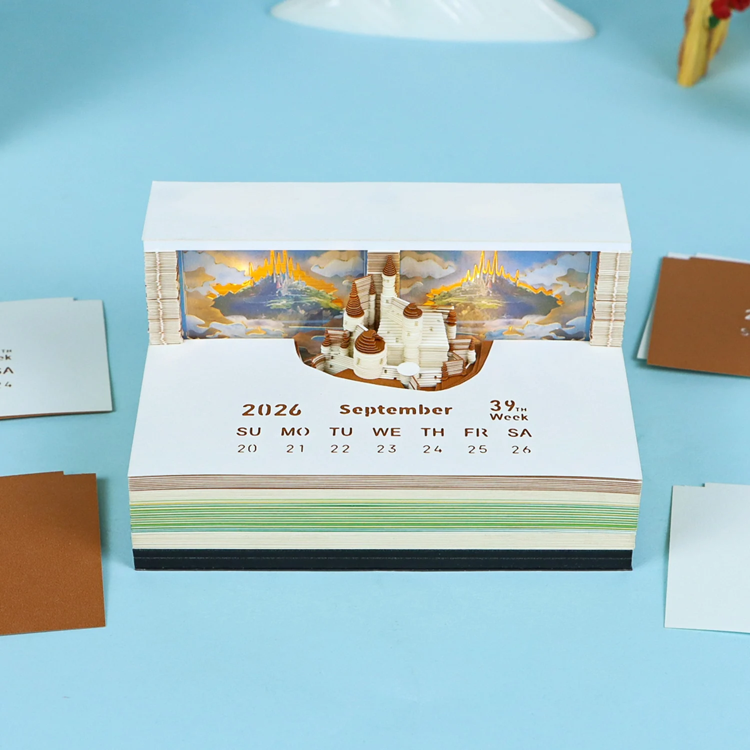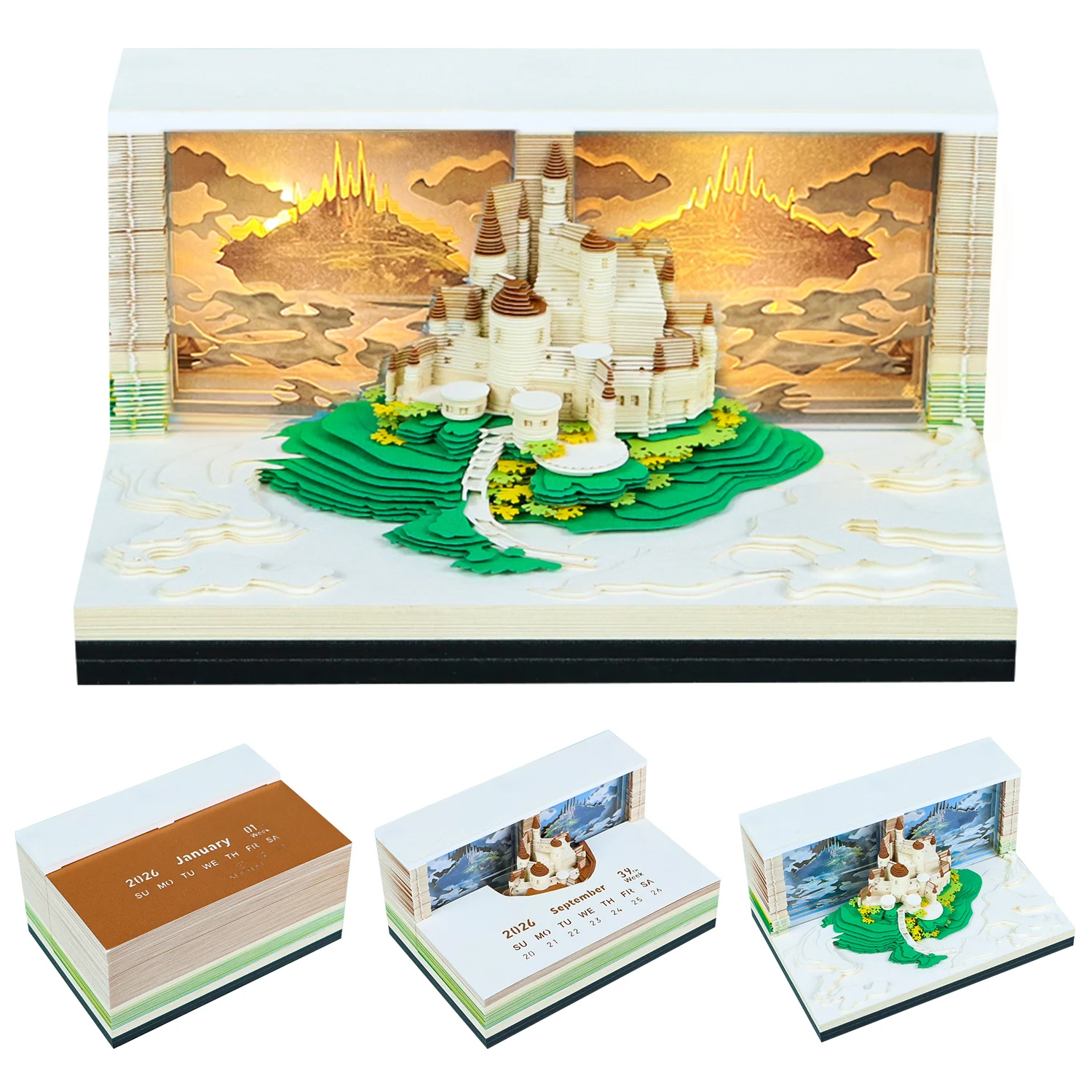 Omoshiroi Block 2026 Calendar Memo Pad 3D Carving Notepad TearOff Paper Memo Pad Block Notes Castle SKY Calendar Christmas Gift
