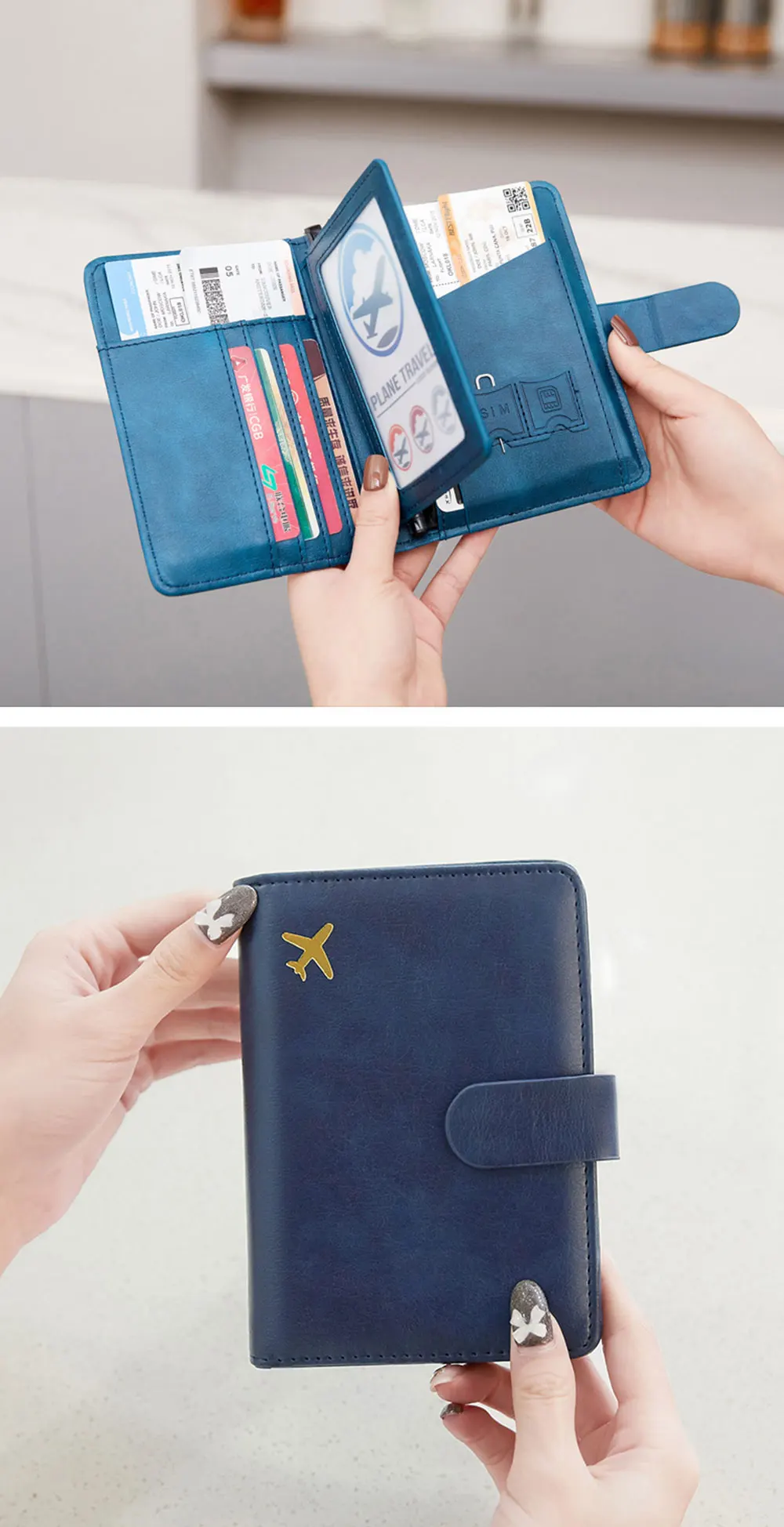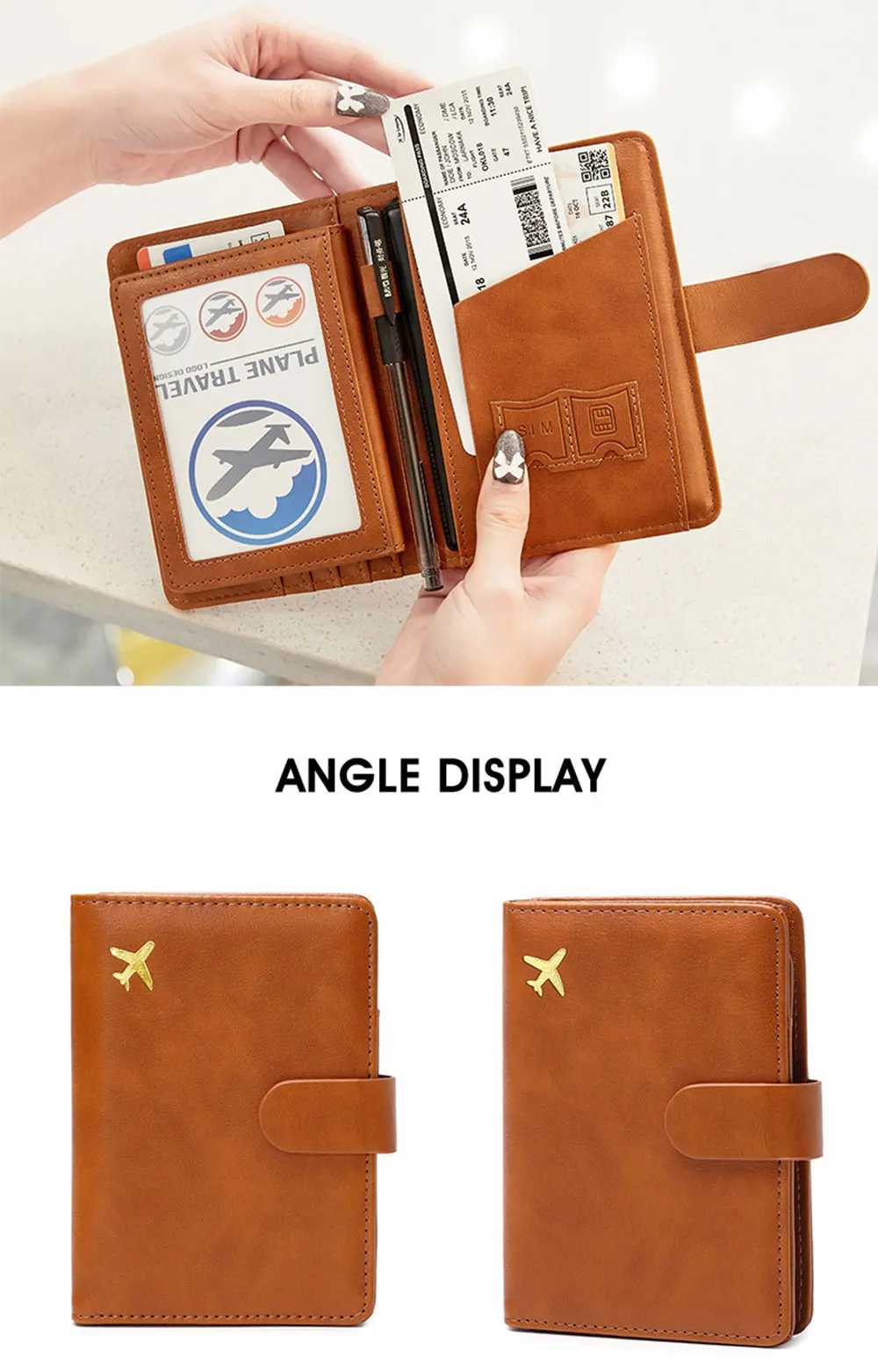 Travel Passport Wallet Women Man Card Holder RFID Blocking Credit Card ID Bag Plane Ticket Holder Multifunction Wallets