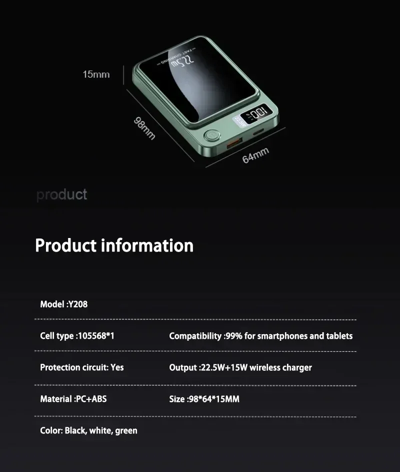 Product:Magnetic Wireless 22.5W Charger Power Bank